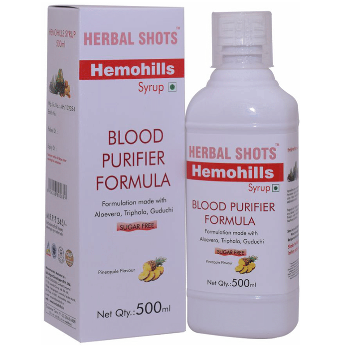 Herbal Shots Hemohills Pack of 2 Herbal Shots of Hemohills is a unique herbal blend of all-natural herbs. Manjishtha and neem are mentioned to be the blood purifier in traditional texts. Triphala acts as an excellent colon cleanser and may assist in natural cleansing. Aloevera may help cleanse and detoxify the body. Guduchi is considered to have antioxidant properties.
