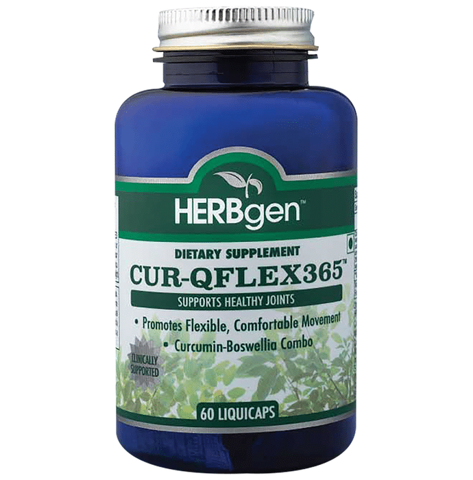 Herbgen Cur-Qflex 365 Liquicap Herbgen Cur-Qflex 365 Liquicap aids in the reduction of inflammation and boosts the immune system. It promotes joint health, lowers inflammation in the body and may lower the risk of heart disease. It contains Curcuminoids, which improve the body's antioxidant capacity and prevent oxidative stress. It may also help in reducing exercise-induced inflammation and muscular soreness, letting athletes recover more quickly and perform better.