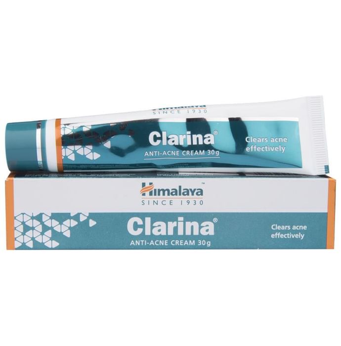 Himalaya Clarina Anti-Acne Cream Clarina cream clears acne effectively and safely. Clarina cream contains Barbados Aloe ( Ghrita-kumari ), Almond ( Vatada ) and Indian Madder ( Manjishtha ).