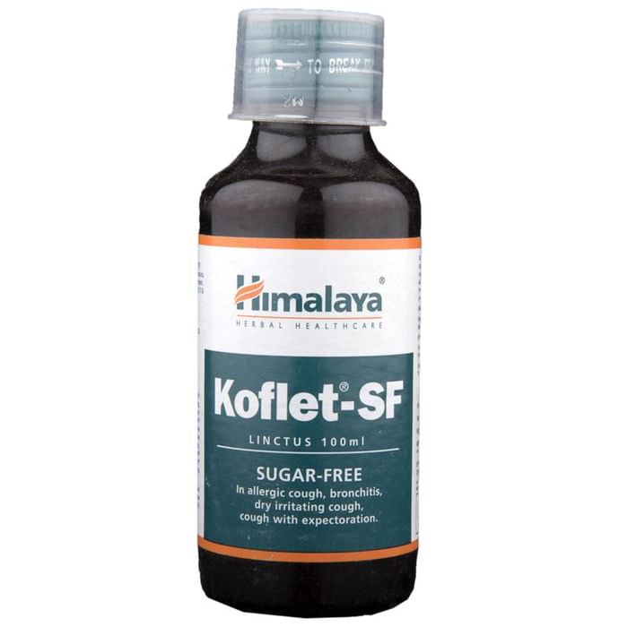 The Himalaya Koflet SF Linctus acts as a cough suppressant and is great for diabetic patients in productive and dry cough. | Key Ingredients: Tulsi Yashtimadhu | Key Benefits: Works as Antitussive, antiseptic, anti inflammatory and cough suppressant Reduces the viscosity of bronchial secretions and facilitate expectoration Demulcent action, soothes respiratory passages Holy Basil possesses potent antihistaminic properties so protects against pollen-induced brochospasms, catarrh and bronchitis due to its varied pharmacological properties Licorice has antitussive, expectorant and immune-enhancing properties that are helpful for relieving cough | Directions For Use: As directed by the physician | Safety Information: Read the label carefully before use Do not exceed the recommended dose Keep out of reach and sight of children Store the formulation in cool and dry place