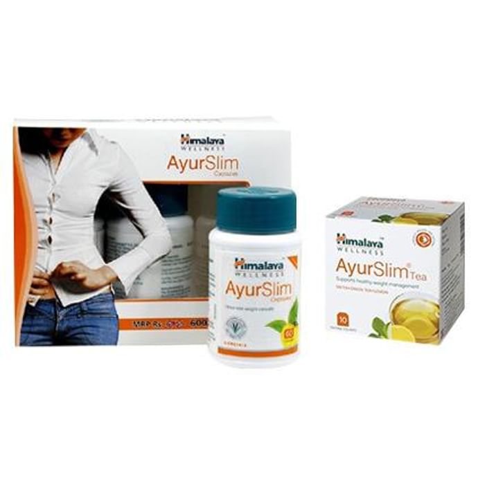 Himalaya Wellness Weight Management Combo Pack of AyurSlim Capsules (Triple Pack) and AyurSlim Tea (10's Pack) Himalaya Wellness Weight Management Combo of AyurSlim Capsules (Triple Pack) and AyurSlim Tea (10's Pack) AyurSlim has a favorable effect on weight reduction and lipid profile. AyurSlim contains Gymnema, Garcinia which limits fat production in the body and aids in body weight reduction. AyurSlim Tea helps to maintain healthy lipid levels and aid in digestion.