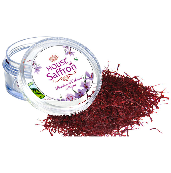 House of Saffron Premium Kashmiri Mogra is sourced directly from well trusted and experienced farmers from the saffron valley of Kashmir. The Kashmiri saffron is naturally harvested and hand-picked. It effectively enhances mood and improves heart and respiratory health. Saffron is also beneficial in improving skin complexion and is a great remedy for dry skin. | Key Ingredients: Saffron | Key Benefits: Saffron has multiple uses for our body influencing mood and heart and improving respiratory health Effectively helps in the treatment of sleep disorders, depression, Alzheimer's disease, hardening of the arteries, intestinal gas, heartburn, pain and fright Saffron may also benefit women with menstrual pains and men to prevent premature ejaculation and infertility Saffron is great for skin and is beneficial for dry skin It is a great source of vitamin D and is used in cooking to add flavour and colour to the food | Directions For Use: Use as directed on the label. | Safety Information: Read the label carefully before use Store in a cool and dry place away from direct sunlight Keep out of reach of children