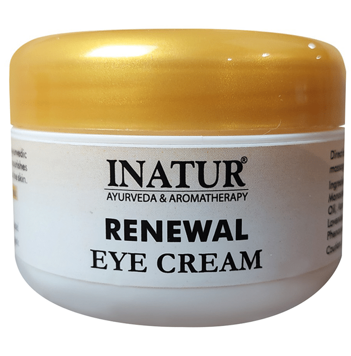 Inatur Renewal Eye Cream Inatur Renewal Eye Cream is an Ayurvedic product enriched with rare herbs, vitamin E, and A. It deeply hydrates and revitalises skin near the eyes, restoring moisture and making it firmer. Its light cream base formula helps it to absorb easily. It also helps to reduce dark circles, puffiness around the eyes and the appearance of age spots.