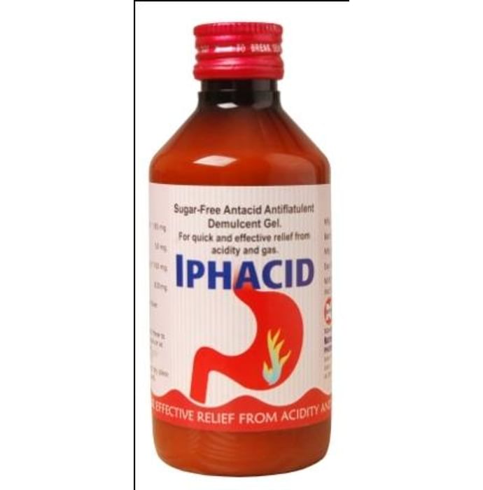 Iphacid Suspension is a therapeutic digestive medication containing a balanced mix of Aluminium hydroxide, Simethicone and Magnesium hydroxide. Aluminium hydroxide is an antacid, which neutralises increased stomach acid. Simethicone relieves the system from gastric issues like acidity, bloating and irritable bowel movement. Magnesium hydroxide is a laxative that increases water in the intestine and reduces stomach acid. Iphacid is helpful in providing relief from peptic ulcer, gastritis, heartburn, oesophagitis, and other dyspeptic conditions associated with hyperacidity. Directions of use: For immediate effect, consume 1-2 teaspoonfull of Iphacid after meals. Precautions: Use after properly shaking the bottle. Use under Medical supervision.