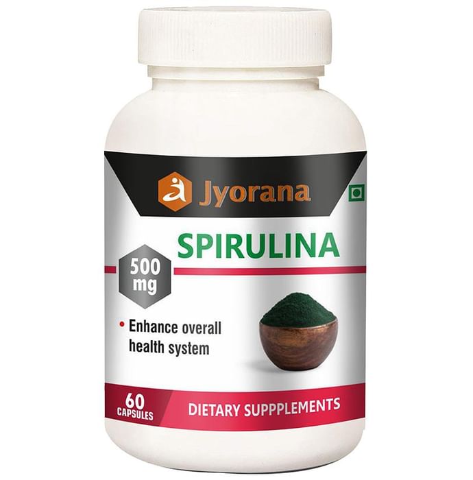 Jyorana Spirulina 500mg Capsule Jyorana Spirulina 500mg Capsule is suggested for increasing the strength of the immune system and also aids in ridding the liver of any toxins hence, cleansing it. It also helps maintain good cardiovascular health.