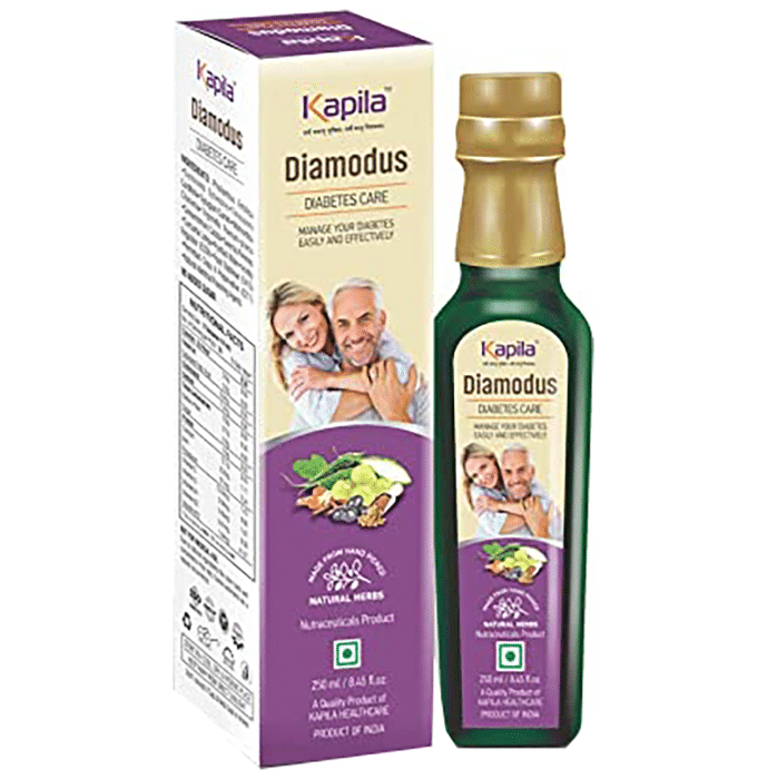 Kapila Diamodus research shows that Kapila Diamodus helps support healthy glucose metabolism. Clinically proven to optimise glycemic response or to help normalise blood sugar levels. Mono-unsaturated fatty acid (MUFA) lipid system is ideally suited for cardiovascular health. Kapila Diamodus can help regulate sugar levels. | Key Ingredients: Phyllanthus Emblica, Gymnema Sylvestre, Tinospora Cordifolia, Syzygium Cumini, Momordica Charantia, Trigonella Foenum-Graecu, Cinnamomum Cassia, Swertia Perennis, Curcuma Longa, Purified Water, Acidity Regulator (E330), Food Stabiliser (E415), Contains Permitted Class 2 Preservative (E211), Natural Identical Flavouring Agents | Key Benefits: It helps manage trouble experienced during urination It regulates carbohydrate metabolism Provides vitamins and minerals for daily nutritional support It is an antioxidant and immunity booster | Directions For Use: Drink 5 ml twice daily or as directed by your physician. | Safety Information: Read the label carefully before use Store in a cool and dry place, away from sunlight Keep out of reach of children