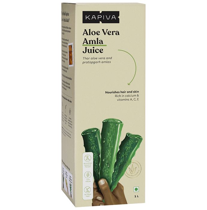 Kapiva Aloe Vera + Amla Juice Kapiva Aloe Vera + Amla Juice is a 100% natural way to boost your immunity. This juice is free from any synthetic elements hence an organic way to enhance your health. It is made from hand-picked herbs and consists of no flavour, oil, or external impurities. If taken daily with suggested usage, it will provide great protection against numerous diseases.