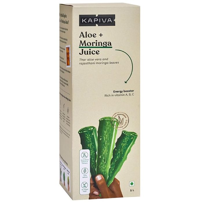 Kapiva Aloe Vera + Moringa Juice Kapiv Ayurveda 100% Organic Aloe Vera + Moringa Juice is made from 100% organic, hand-picked herbs and is a great source of energy to increase stamina. It contains aloe vera pulp and moringa and is free from synthetic flavour, colour and chemicals. It has various health benefits and protects cell from damage caused by free radicals.