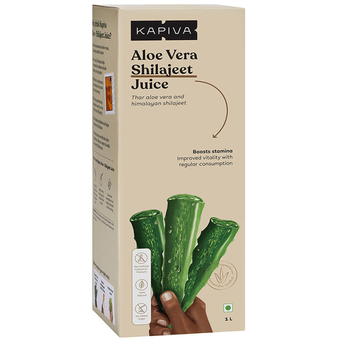 Kapiva Aloe Vera + Shilajeet Juice Kapiva Organic Aloe Vera + Shilajeet Juice is a purely natural source of vitamins and minerals with several benefits. Shilajeet which is an active ingredient in the product is best known as a stamina booster. Prepared to blend two super-beneficial herbs, the juice boosts vigour and vitality by increasing your stamina.