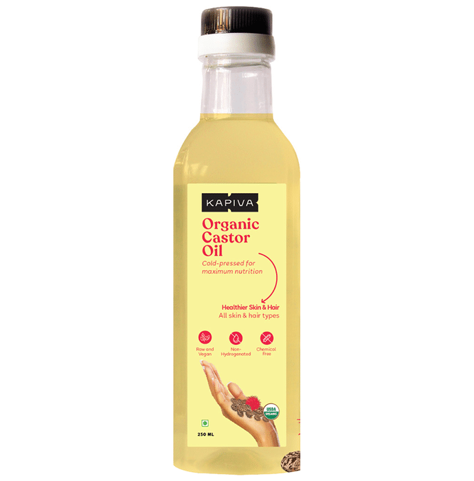 Kapiva Organic Castor Oil Castor oil is a common ingredient in many beauty products. It is rich in essential fatty acids that moisturize the skin. It is a good source of vitamin E, omega-9, and omega-6. | Key Ingredients: Castor oil | Key Benefits: Castor oil is a thick, odourless oil made from the seeds of the castor plant It is pressed virgin oil that is beneficial to ease constipation It is rich in essential fatty acids that moisturise the skin | Directions For Use: Use as directed on the label or as advised by your healthcare provider. | Safety Information: Read the label carefully before use Store in a cool and dry place away from direct sunlight Keep out of reach of children