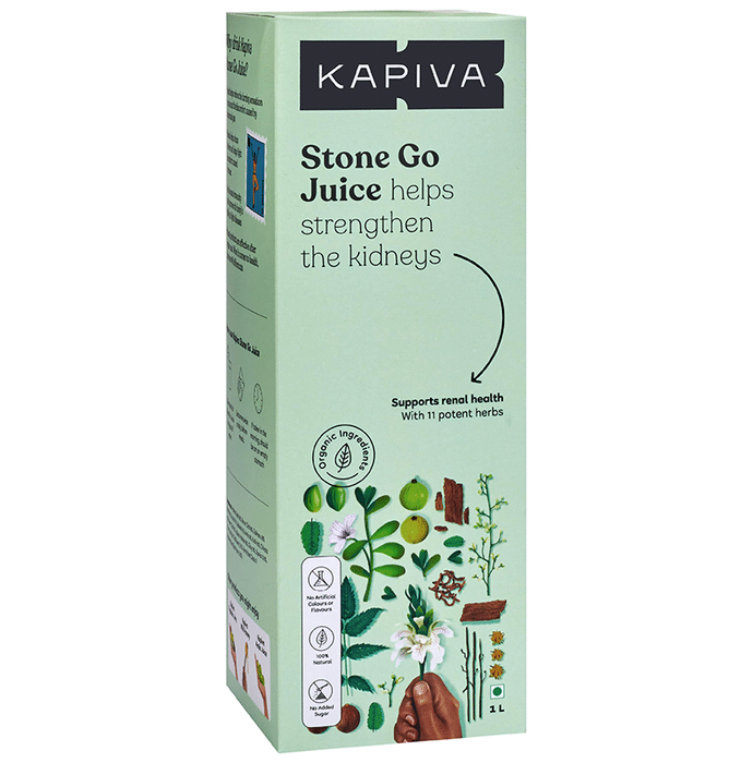 Kapiva Stone Go Juice Kapiva Ayurveda 100% Organic Stone Go Juice is an ayurvedic formulation that helps to break kidney stones into smaller pieces and hence effectively reduces the pain of kidney stones. It cleanses the kidney and leads to a normal flow of urine. It has no side effects on the body.