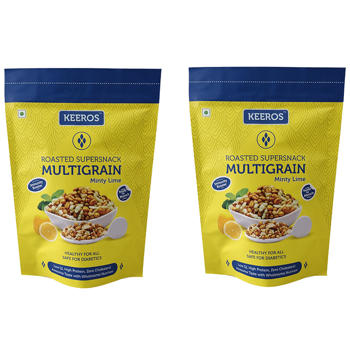 Keeros Roasted Supersnack Multigrain (200gm Each) Minty Lime Keeros Roasted Supersnack Multigrain are low in GI and full fibre content making it an ideal diabetic snack. It is also a healthy snack for weight loss and a good alternative to fried snacks and namkeens. Having zero cholesterol and zero trans-fats, this diet food snack is good for Heart Health. So make keeros the essential diet snacks in your pantry. It is 100% Natural, primarily roasted with almost no oil or processing. It has No Artificial colours, Flavours or Preservatives. It has Superfoods as ingredients rich in Minerals and Vitamins.