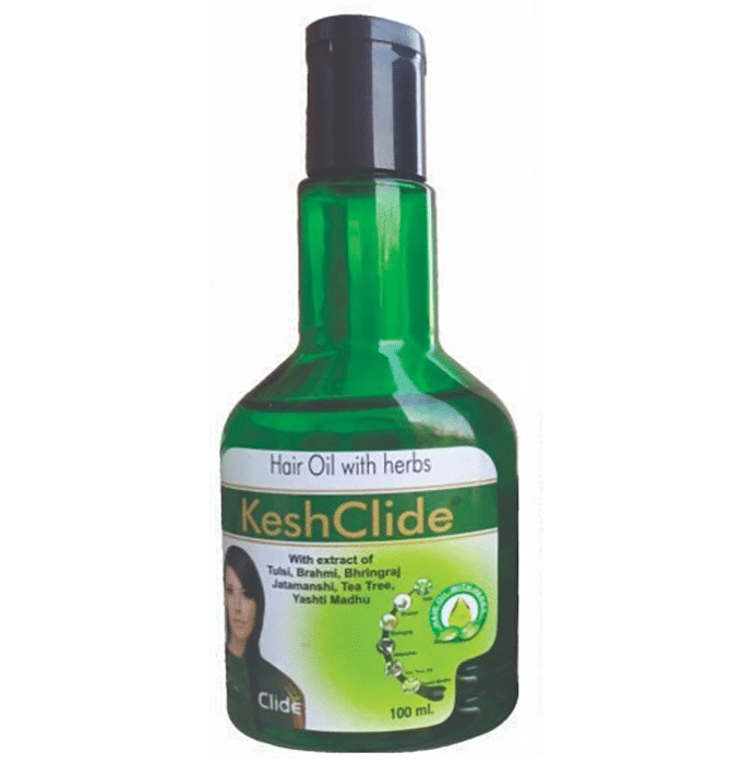 Keshclide Hair Oil is designed to help reduce hair fall and support hair growth. It may provide nutrients to the scalp and hair. It is a natural and herbal oil consisting of Ayurvedic herbs like Bhringraj, which can help promote hair growth and blood circulation. | Key Ingredients: Tulsi Brahmi Bhringraj Jatamansi Tea tree oil Yashti madhu | Key Benefits: The hair oil is made with Ayurvedic herbs It can help reduce hair fall It may promote hair growth It can nourish the scalp to help get healthy, strong, and lustrous hair | Directions For Use: Take 5 to 10ml of the hair oil Apply on the scalp with fingertips and massage gently | Safety Information: Read the label carefully before use Store in a cool and dry place Keep out of reach of children