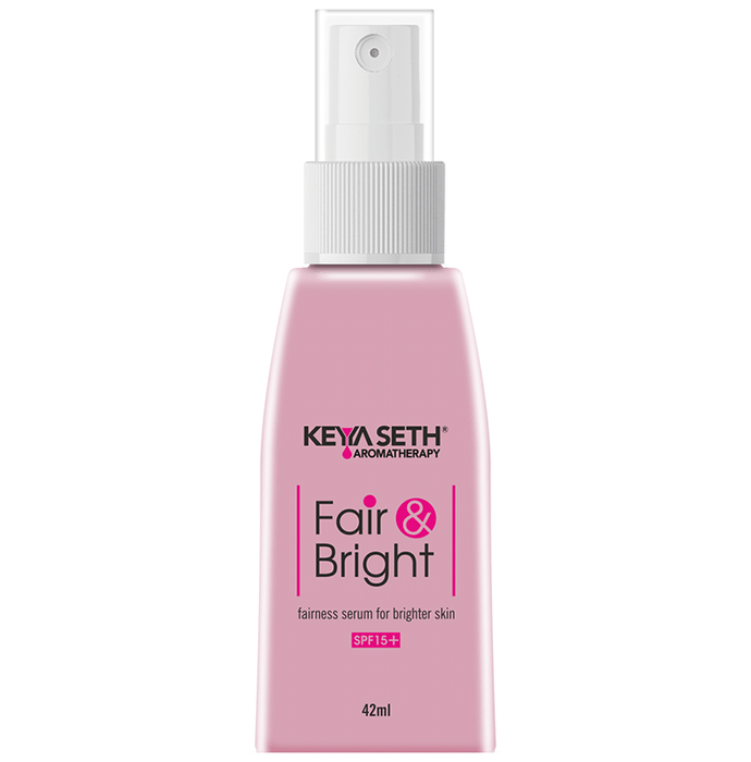 Keya Seth Aromatherapy Fair & Bright Fairness Serum for Brighter Skin SPF15+ Keya Seth Aromatherapy Fair and Bright Fairness Serum is an aromatherapy-based formulation infused with pure essential oils of saffron, lavender, carrot seed, neroli and patchouli that promises to nourish, lighten and brighten the skin tone. It helps in getting rejuvenated and noticeably radiant skin within weeks. The serum absorbs quickly into the skin and reaches the deeper skin layers to nourish and brighten from within. The SPF 15+ content helps in protecting your skin from harmful sun rays.