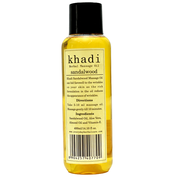 Khadi Herbal Sandalwood Massage Oil Khadi Herbal Sandalwood Massage Oil is prepared by herbal formulation useful for body ache and skin shrinks. The oil has Anti-stress properties and is useful for body ache, rich antioxidants, and keeps skin well-hydrated.