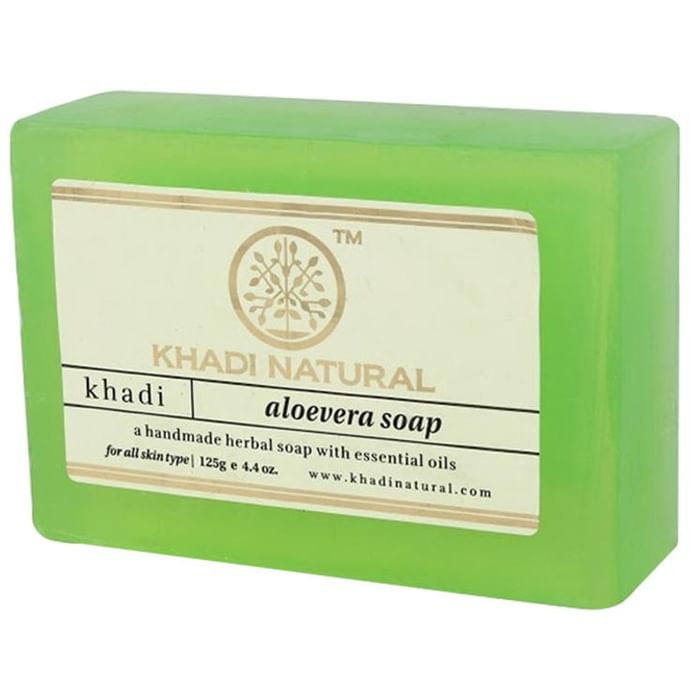 Khadi Naturals Ayurvedic Aloevera Soap Khadi Naturals Ayurvedic Aloe vera Soap is made up of natural ingredients that cleanse, tone and nourish your skin. It helps in maintaining moisture balance and keeps your skin hydrated. Aloe Vera is a well-known moisturizer and revitalizer of skin.