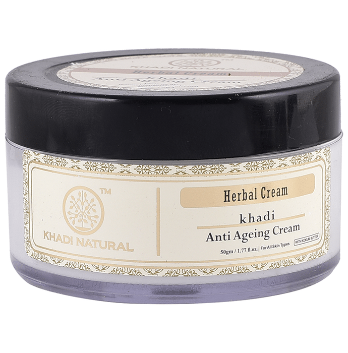 Khadi Naturals Ayurvedic Anti-Ageing Cream Khadi Naturals Ayurvedic Anti-Ageing Cream is an ayurvedic formulation that helps delay the onset of sagging skin and significantly firms up the skin to unveil the natural, healthier and younger looking skin. It reduces the appearance of wrinkles and age spots, naturally.