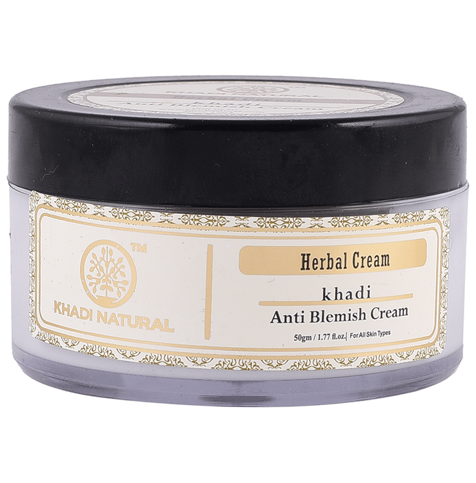 Khadi Naturals Ayurvedic Anti Blemish Cream Khadi Naturals Ayurvedic Anti Blemish Cream is used to gently dislodge debris from deep within skin pores and follicles, and also may help prevent future acne because of its vitamin A content. It improves the skin complexion and leaves you with beautiful and radiant skin.