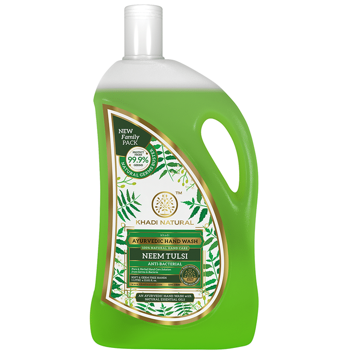 Khadi Naturals Ayurvedic Hand Wash Neem Tulsi is formulated to guard the skin from infections. It assists in exfoliating the skin and also keeps the skin supple. The goodness of these natural ingredients provides 99.9% germ protection in just 10 seconds while ensuring soft and odour-free hands. Time to say goodbye to every harmful chemical-based hand wash and get your skin fit with fast-acting Ayurveda. | Key Ingredients: Neem Tulsi | Key Benefits: It helps to keep the germs and bacteria away in the most natural form It protects against illness-causing germs This handwash protects your skin and helps lock in the moisture It is also useful in removing grease and unpleasant odour The antibacterial properties of Tulsi help keep your hands germ-free | Directions For Use: Read the label before use. | Safety Information: Do not exceed the recommended dosage Store in a cool and dry place away from direct sunlight Keep out of reach of children