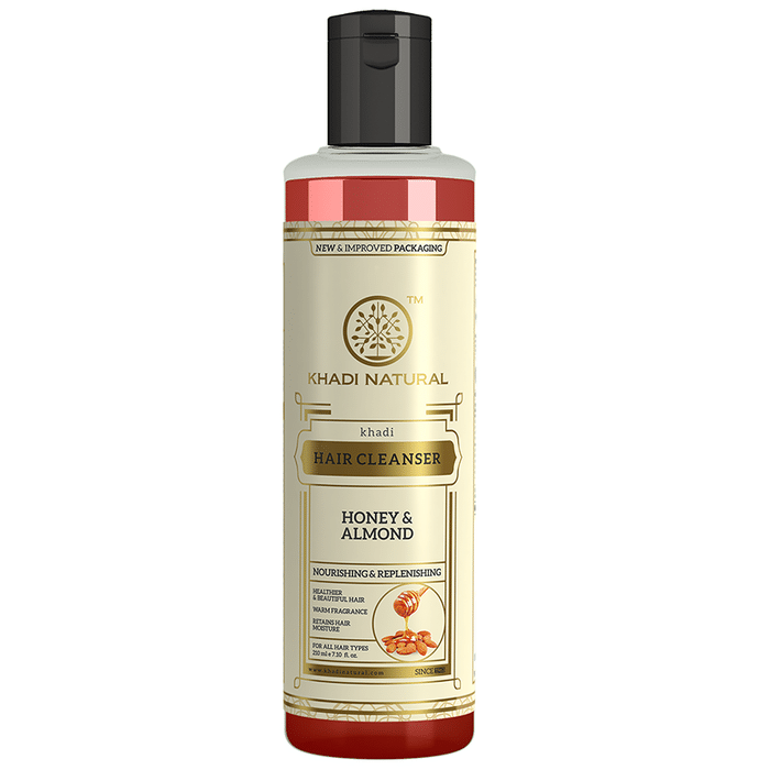 Khadi Naturals Ayurvedic Honey & Almond Hair Cleanser Khadi Naturals Ayurvedic Honey & Almond Hair Cleanser It gently washes the scalp and deeply nourishes tresses, giving you thicker, shinier, and stronger hair. It works as a natural moisturiser and minimizes the chances of dandruff, irritation, and dryness. Tulsi, amla, shikakai and mehndi make hair soft and relaxed over time as well.