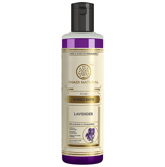 Khadi Naturals Lavender Bubble Bath is a relaxing, calming bath oil base that provides relief from stress and fatigue. | Key Ingredients: Jasmine Flower Basil Oil Lavender Oil Glycerine Proline Glycol | Key Benefits: Provides the perfect environment for relaxing and bathing Useful for all types of skin Removes dirt and pollutants from the skin Gives a radiant look to the skin Ease out muscles tension and stress | Directions For Use: Add 20 to 50 ml khadi aromatic bubble bath in the bathing bar Enjoy the bath by relaxing into bath tub | Safety Information: Read the label carefully before use Keep out of reach and sight of children Store the formulation in cool and dry place