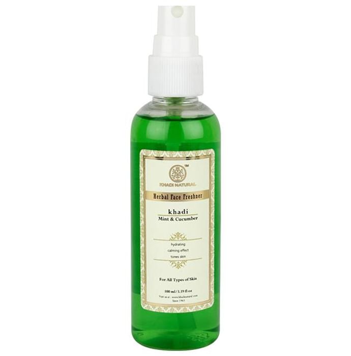 Khadi Naturals Mint & Cucumber Face Freshner | Key Ingredients: Cucumber Mint Extract | Key Benefits: Freshens up the face by removing dirt and cleaning pores Protects the skin from germs Makes skin soft and fresh instantly Non-drying & gentle Normalizes skin to prevent inflammation Provide hydration to the skin Makes you feel fresh and ready for the day | Directions For Use: Spray on your face Wipe off after 30 seconds with tissue or cotton | Safety Information: For topical use only Keep out of the reach and sight of children