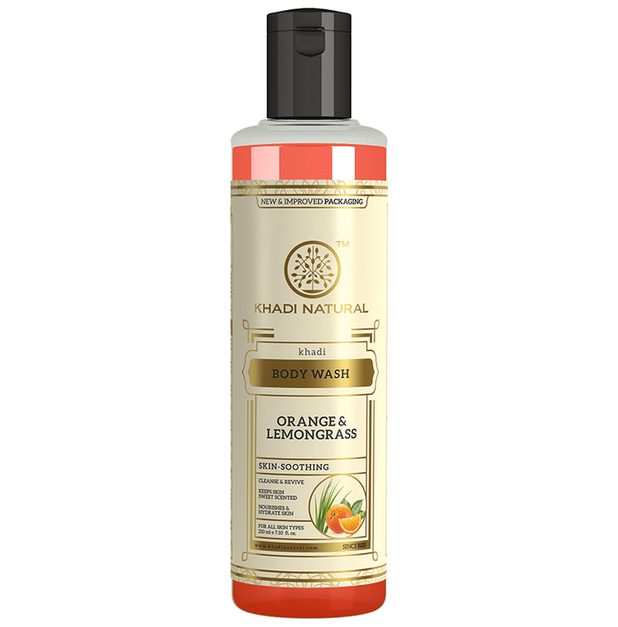 Khadi Naturals Ayurvedic Orange & Lemongrass Body Wash Khadi Naturals Orange & Lemongrass Body Wash is made with natural ingredients. This body wash helps to keep the skin fresh and clean all day. It helps in removing dirt and impurities and revitalizes the skin.
