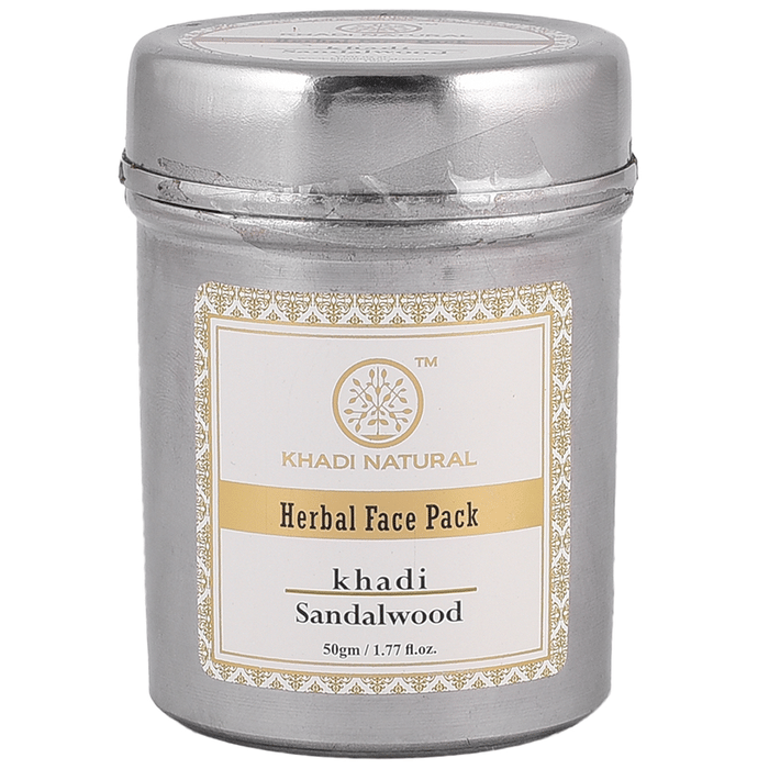 Khadi Naturals Ayurvedic Sandalwood Face Pack nourishes the dry and normal skin. Sandalwood retains its fragrance for a long time. It reduces sunburn, inflammation and refreshes the skin. It moisturizes the skin and also evens the skin texture. Khadi Naturals Ayurvedic Sandalwood Face Pack stops the skin from aging and sagging and prevents wrinkles. | Key Ingredients: Fuller'S Earth Sandal Wood Powder Ocimumm Basilacum Neem Wild Curcuma Aromatica Salish Curcuma Zedo Aria Rose Symplocus Racemosa | Key Benefits: Helps to draw out the excessive heat and keeps the skin clean and soft Has an antiseptic property that keeps the skin healthy and brightens the dull skin and gives it a radiant look Prevents the wrinkles and improves complexion | Directions For Use: Take 5 gms of Khadi Naturals Ayurvedic Sandalwood Face Pack and mix it with rose water, plain water or milk Apply a thin layer all over your face, neck, shoulders and chest area. Leave on at least for roughly 10-15 minutes Splash with water and then gently scrub to exfoliate and rinse off | Safety Information: Read the label carefully before use Keep out of the reach of children Store at a cool and dry place Should be protected from direct sunlight