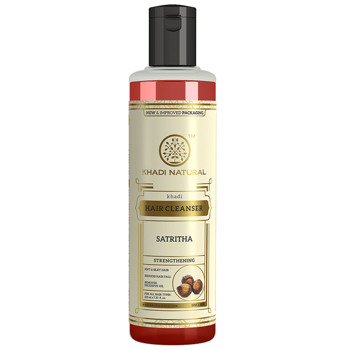 Khadi Naturals Ayurvedic Satritha Hair Cleanser Khadi Naturals Ayurvedic Satritha Hair Cleanser is a completely natural product which uses the goodness of potent hair remedies including Reetha, Aloe Vera, Amla, Bhringraj, Centella Astica which helps to reduce hair fall and makes the hair stronger and shinier.