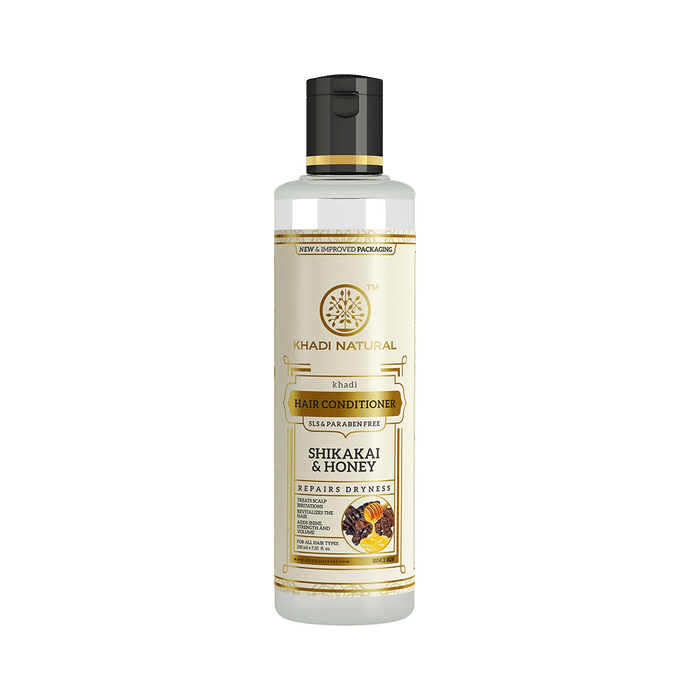 Khadi Naturals Ayurvedic Shikakai and Honey Hair Cleanser is suitable for all hair types and is a potent combination of mild ayurvedic herbals that takes good care of the hair without any hair damaging. It fights dandruff, conditions the hair, makes them soft and brings back the shine, bounce, and good health to the hair. | Key Ingredients: Shikakai Honey | Key Benefits: Shikakai has antioxidants properties and enriches with vitamins A, C, K, and D, which help nourish hair and keep it healthy It adds shine to the hair while also making it much more manageable It acts as an antidandruff as well as an effective conditioner to the hair Provides bounce and good health to the hair | Directions For Use: Gently apply Naturals Ayurvedic Shikakai and Honey Hair Conditioner- SLS Paraben to the hair and rinse off. | Safety Information: Read the label carefully before use Keep out of the reach of children Store in cool and dry place Should be protected from direct light