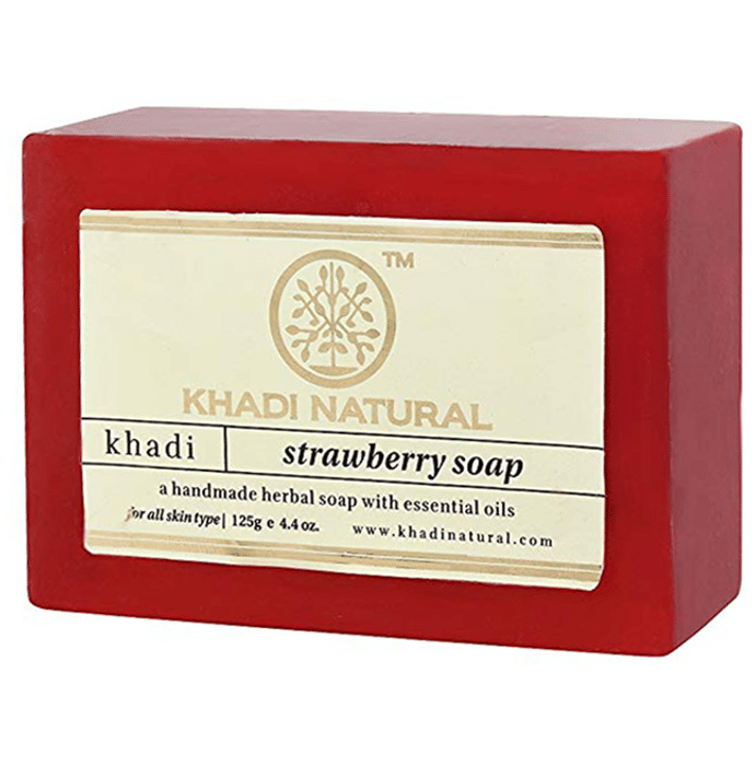 Khadi Naturals Ayurvedic Strawberry Soap Khadi Naturals Ayurvedic Strawberry Soap possesses an intoxicating strawberry scent and is made from mild glycerine that keeps the skin silky soft, supple and smooth.