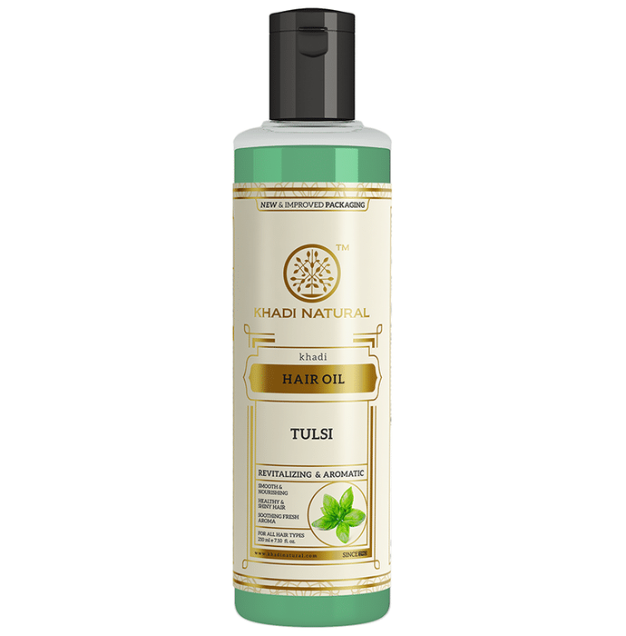 Khadi Naturals Ayurvedic Tulsi Hair Oil Khadi Naturals Ayurvedic Tulsi Hair Oil Pack of 2 is an ayurvedic hair oil which helps in preventing hair fall and makes your hair naturally strong. Enriched with natural herbs like tulsi, amla, shankhpushpi and neem it nourishes dry scalp and makes your hair naturally long. It provides deep nourishment to dry hair and heals damaged hair . Based on herbal formulation, it is safe for regular use.
