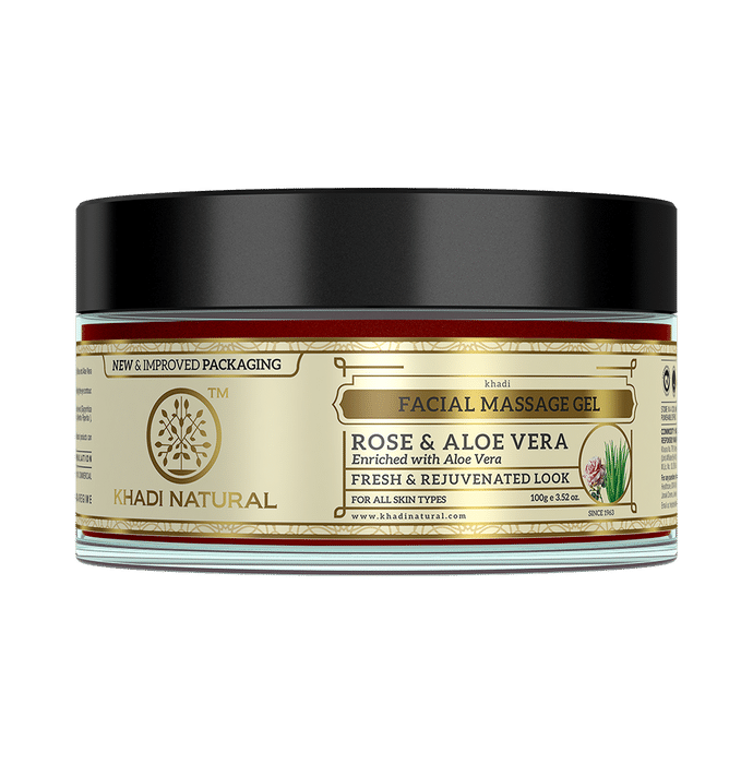 Khadi Naturals Facial Massage Gel Rose & Almond Facial massage gel with great skin soothing and hydrating properties cleans and relaxes the skin. Aloe vera hydrates the skin, prevents acne and soothes skin while rose extracts add glow. Suitable for all skin types, this gentle face massage gel can be used in multiple ways, as a night cream, under-eye gel or as a face mask. | Key Ingredients: Rose Almond | Key Benefits: Moisturizes and soothes the skin, reducing discomfort caused by acne Has anit-bacterial and anti-fungal properties that help in preventing acne and breakouts Rose extract helps in soothing the skin and reducing the discomfort caused by acne helps moisturize the skin and soothe itchiness | Directions For Use: Use as directed on the label or as advised by your healthcare provider. | Safety Information: Read the label carefully before use Store in a cool and dry place away from direct sunlight Keep out of reach of children