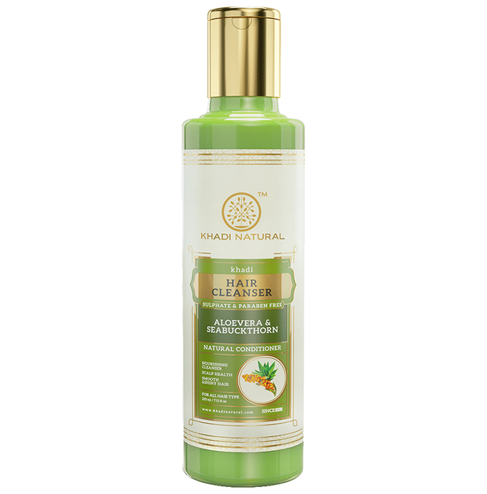 Khadi Naturals Hair Cleanser Aloevera & Amla Khadi Naturals Ayurvedic Saffron, Tulsi & Reetha Hair Cleanser is a herbal shampoo containing natural ingredients like tulsi, reetha and saffron. It not only makes the hair smooth and shiny but also encourages their growth and makes them strong and long. Made for all types of hair, it is a shampoo especially developed for women, making their hair more healthy.