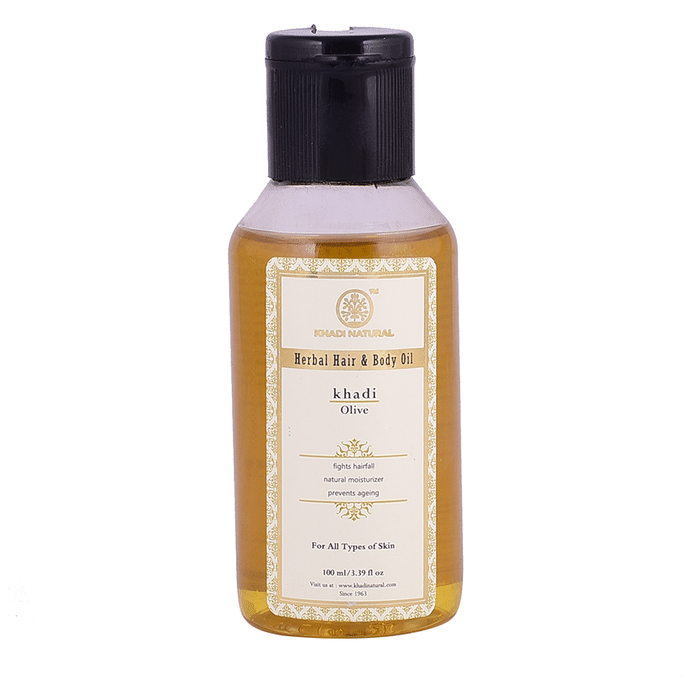 Khadi Naturals Herbal Hair & Body Oil Olive Khadi Naturals Ayurvedic Olive Oil is rich in proteins, minerals, and fatty acids vitamins, plus essential fatty mainly alpha-linolenic acid. It has a mild and non- irritant property that suits all skin types and is rich in antioxidants. It's a multipurpose product as it is used for hair as well as skin.