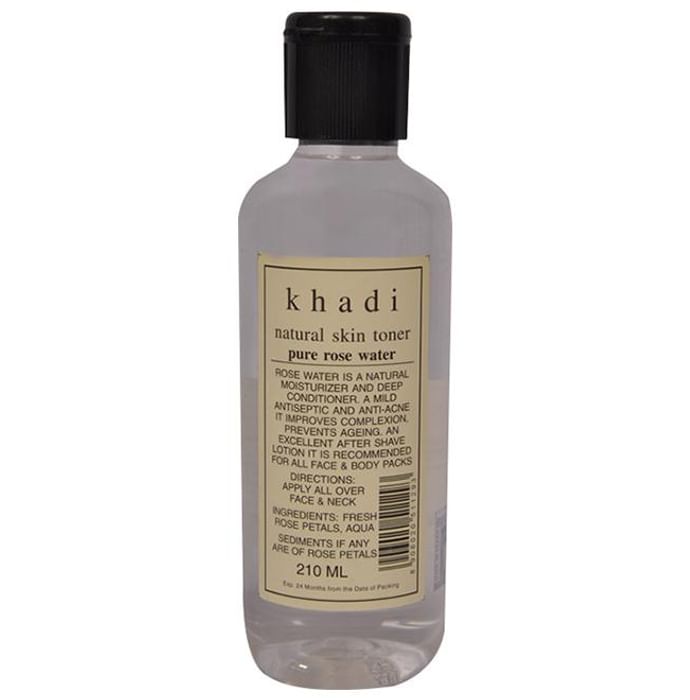 Khadi Naturals Natural Skin Toner Pure Rose Water Khadi Naturals Natural Skin Toner Rose Water is a natural moisturizer that imparts glamour and glow to the skin of all type being a deep conditioner. It removes dirt and pollutants from the skin. Natural rosewater hydrates, cleanses, tones the skin and makes it radiant. With its heavenly fragrance and matchless purity rosewater also has a calming effect. It can be used as a paste maker in face packs and in water at the bathing time.