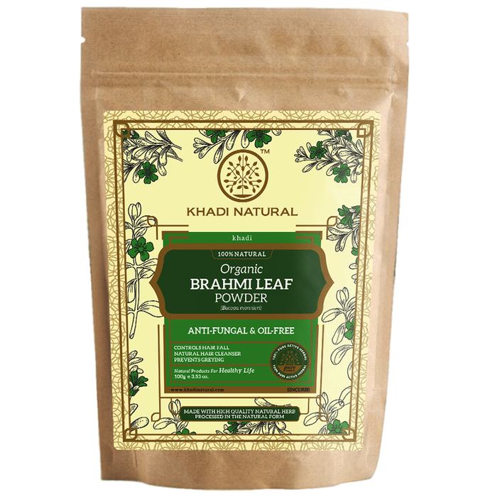 Khadi Naturals Organic Brahmi Leaf Powder Khadi Naturals Organic Brahmi Leaf Powder It helps prevent hair loss as it nourishes and provides strength to the hair. It also disinfects the skin and speeds up the healing process when applied externally. Helps in making your hair stronger and more nourished. It also aids in adding volume to hair and brings lustrous sheen and smoothness to hair