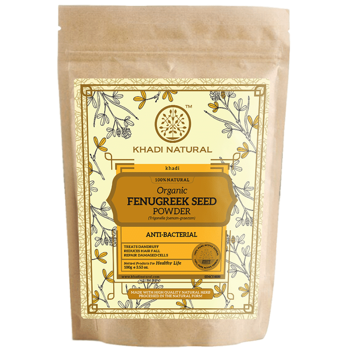 Khadi Naturals Organic Fenugreek Seed Powder Khadi Naturals Organic Fenugreek Seed Powder It is the powdered form of fenugreek seeds that have various health and skin benefits. Fenugreek seeds are highly beneficial for treating hair loss and help in inducing hair growth. It helps to gradually treat hair related issues like hair fall, dandruff, dryness and split ends.