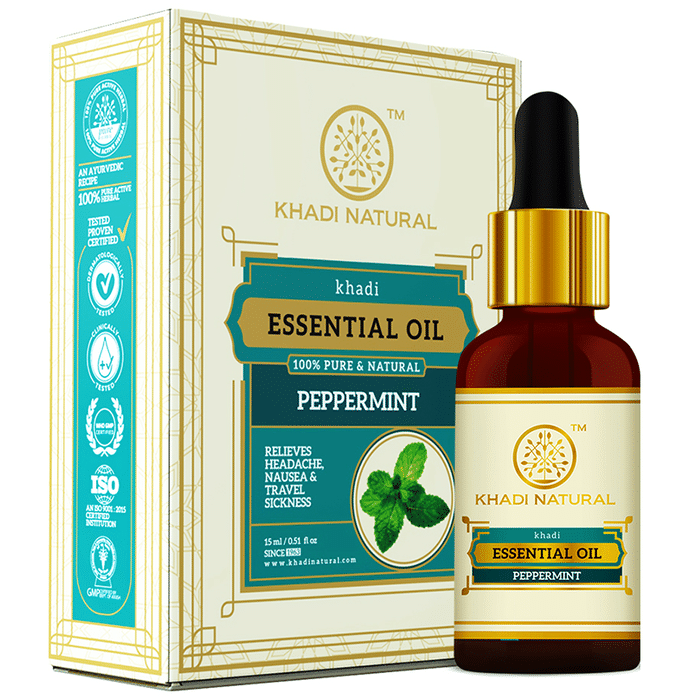 Khadi Naturals Peppermint Essential Oil is a fragrant essential oil which can be used in any carrier. It is a body revitaliser. | Key Ingredient: Peppermint Essential Oil | Key Benefits: One of the oldest and most highly-regarded herbs for soothing digestion Helps trigger a sense of fullness after meals Enhance your sense of taste and smell Improves concentration and mental activity Reduces appetite & mental stimulant Helps concentration & ease concentration Gives cooling sensation and calming effect on the body | Directions for Use: Take an adequate amount of this oil Dilute it with your carrier oil Gently massage on your body Can also be diluted with bathing water | Safety Information: Read the label carefully before use Keep out of reach and sight of children Store the formulation in cool and dry place