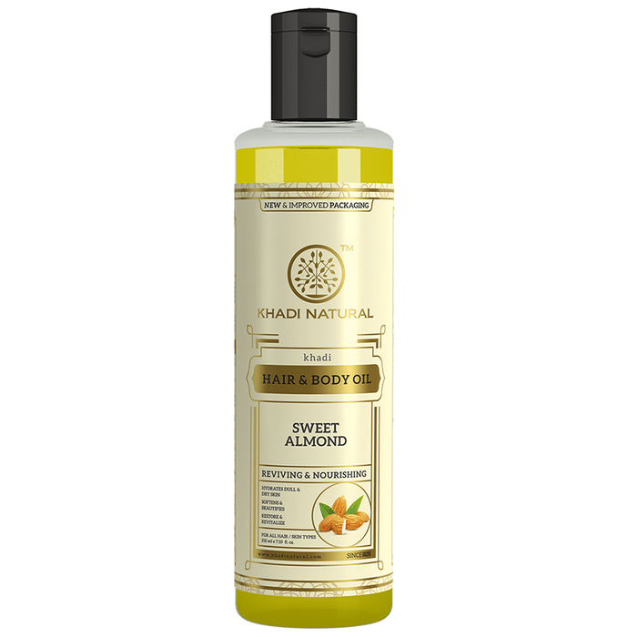 Khadi Naturals Sweet Almond Hair & Body Oil Khadi Naturals Ayurvedic Sweet Almond Oil is a nourishing and hydrating oil. It contain natural pressed oil.