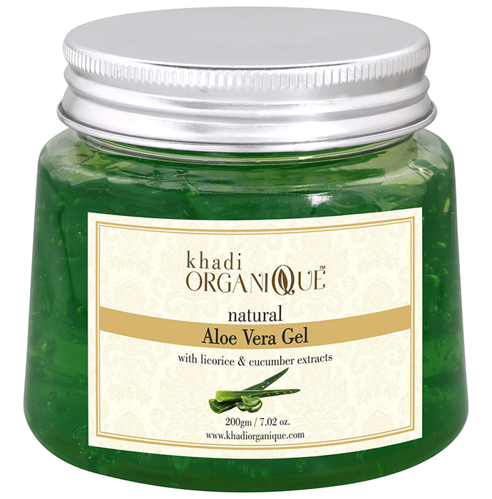 Khadi Organique Natural Aloe Vera Gel is a herbally formulated gel. It helps provide nourishment and hydration to the skin. The gel consists of moisturizing and healing properties and therefore keeps the skin hydrated. Key Ingredients: Aloe Vera Extract Licorice Extract Cucumber Extract Comfrey Extract Ashwagandha Extract Key Benefits: Helps to remove the dead skin as it acts as an exfoliator and therefore helps to clear the skin as well Aloe Vera extract provides the skin with a soothing as well as calming effect and therefore contributes to the youth of the skin The gel can be used for hair and skin both. It helps to nourish the scalp as well as it also known to help fight away dandruff Directions For Use: Take a small quantity of the gel on clean hand and apply it on the face or hair Keep it on for some time (10-15 minutes) and wash it off Safety Information: In case of allergic response, discontinue using the product Store in cool and dry place Keep away from children