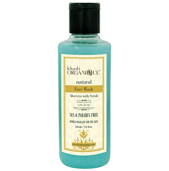 Khadi Organique Natural Face Wash Aloevera with Scrub SLS Paraben Free Khadi Organique Natural Face Wash Aloe Vera with Scrub is a gentle face wash. It washes off dirt and oil from your face and keeps it moisturised. Aloevera in the facewash makes it super hydrating and nourishing for skin. It makes skin soft and supple. It works against fine lines and wrinkles and is suitable for all skin types.