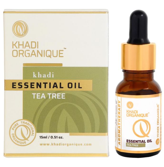 Khadi Organique Tea Tree Essential Oil Khadi Organique Essential Oil is designed for aromatherapy and is also helpful in the case of migraines, nervous tension, anxiety and fatigue. The oil promotes healthy hair and skin. In addition to this, it comprises of antioxidant, anti-inflammatory, astringent and antimicrobial properties.