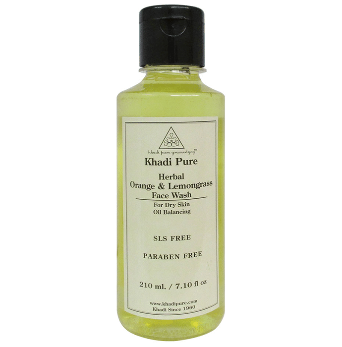Khadi Pure Herbal Orange & Lemongrass Face Wash SLS-Paraben Free It cleanses the skin deeply with its natural foaming ingredients and helps in improving skin texture. It helps to rejuvenate dry and dull skin and keeps the skin soft and hydrated. | Key Ingredients: Orange Lemongrass | Key Benefits: This product refreshes and brightens your skin to make it look brighter It is rich in antioxidants and can remove impurities and pollutants from the skin surface Helps to exfoliate the surface to remove dead skin cells and impurities to reveal clean skin | Directions For Use: Use as directed on the label or as advised by your healthcare provider. | Safety Information: Read the label carefully before use Store in a cool and dry place away from direct sunlight Keep out of reach of children