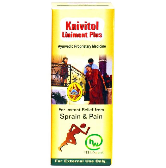 Knivitol Liniment Plus is a blend of organic ingredients that acts as an anti-inflammatory ointment. It provides relief from rheumatic, sciatic, joint and muscular pains. It also reduces stiffness in joints, nape, neck and backache. It gives you a soothing sensation and relaxes the muscles. | Key Ingredients: Kapoor Ajwain Pudina Nilgiri Musturd oil Turpentine oil Clove oil Til oil Wintergreen oil Hari chaika tel | Key Benefits: It is beneficial in giving relief from joint pain It contains kapoor that, has anti-inflammatory properties, and effectively lessens discomfort It also has the anti-inflammatory and anti-arthritic properties of turpentine oil Phudina phool has a cooling effect Nilgiri Tel is employed as an antiseptic and counter-irritant | Directions For Use: Apply gently on affected areas Or as advised by your healthcare practitioner | Safety Information: Read the label carefully before use Store in a cool and dry place, away from sunlight Keep out of reach of children