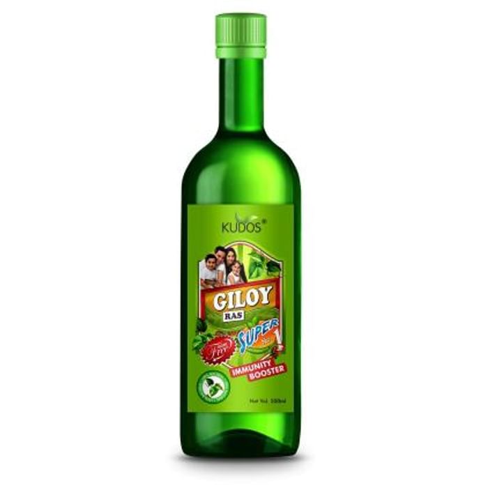 Kudos Giloy Ras provides the body with strength to fight respiratory troubles and chronic fever. It is useful in maintaining good gut health and improve the body’s defence mechanism. | Key Ingredient: Giloy | Key Benefits: It is useful in boosting immunity It helps the process of digestion thus improving digestive health It can be used to treat chronic fever It aids the treatment of Type 2 Diabetes | Directions For Use: Use as directed by the physician. | Safety Information: Read the label carefully before use Store in a cool dry place away from direct sunlight Keep out of reach of the children