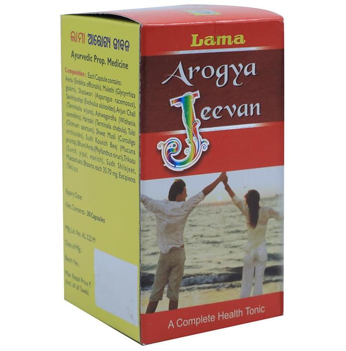 Lama Arogya Jeevan Capsule helps to support and strengthen the immune system. | Key Ingredients: Amla (Emblica officinalis) Mulethi (Glycyrrhiza glabra) Shatavari (Asparagus racemosus) Sankhpushpi (Evolvulus alsinoides) Arjun Chall (Terminalia arjuna) Ashwagandha (Withania somnifera) Haritaki (Terminalia chebula) Tulsi (Ocimum sanctum) Shwet Musli (curculigo orchioides) Sudh Kounch Beej (Mucuna Prurita) Bhumi Amla (Phyllanthus niruri) Trikatu (Sunth, Pipal, marich) Sudh Shilajeet Muktashukti Bhasma | Key Benefits: It has antioxidant properties which help to prevent free-radical cell damage It has anti-inflammatory properties and may help boost your immune system It may help to provide relief from cough | Directions For Use Take 1-2 capsules twice daily or as directed by the physician. | Safety Information: Read the label carefully before use Keep out of reach of the children Store in a cool dry place away from direct sunlight Do not exceed the recommended dosage