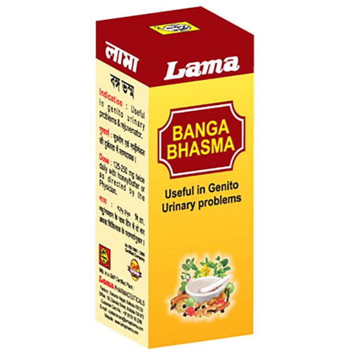 Lama Banga Bhasma is used in the treatment of urinary disorders such as frequent urination and excessive uterine bleeding. It may also be used in the treatment of menstrual issue such as Anovulation and Leucorrhoea. | Key Ingredients: Bang (Purified Tin Powder) bhasma | Key Benefits: It is useful in treating urinary disorders such as the issue of frequent urination It helps in fighting general weakness It may also be used in the treatment of menstrual disorders like Anovulation and Leucorrhoea It helps treat excessive uterine bleeding | Directions For Use: Take 125 mg twice a day with milk or as directed by physician. | Safety Information: Store in a cool and dry place Store out of the reach of children Read the label carefully