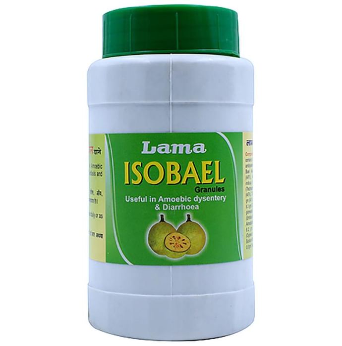Lama Isobael Granules is useful in treatment of intestinal worms, anaemia, stomach pain, headache and feeling of indigestion. | Key Ingredients: Kutaj Chhall (Holarrhena antidystenterica) Bael (aegle marmelos) Anantmool (Hemidesmus indicus) Ajwain (Trachyspermum ammi) Till Oil (Sesamum Indicum) Isabgol (Plantago ovata) Gular chhl (Ficus glomerata) Amla (Emblica officinalis) Aknadipatha (Cissampelos pareira) Nagarmotha (Cyperus rotundus) | Key Benefits: Bael: The antioxidants present helps to treat gastric ulcer and aid in digestion May help in the treatment of diabetes The laxative property prevents constipation and the anti-fungal components keep infections at bay | Directions For Use: Take 1-2 pills/ tablet twice a day with milk or as directed by physician. | Safety Information: Read the label carefully before use Keep out of reach of the children Store in a cool dry place away from direct sunlight Do not exceed the recommended dosage