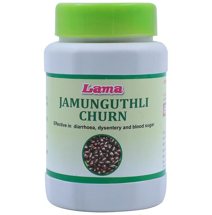 Lama Jamunguthli Churn is specially designed to help control the blood sugar levels and regulate metabolism of carbohydrate in the body. It is also used to treat constipation and Dysentry. | Key Ingredient: Jamun (Syzygium cumini) | Key Benefits: It is useful in regulating blood sugar level in the body Provides effective relief from constipation and Dysentry Useful in regulating carbohydrate metabolism It acts as a blood purifier ridding it of toxins | Directions For Use: Consume 5 gms twice daily with water or as directed by physician | Safety Information: Read the label carefully before use Store in a cool dry place away from direct sunlight Keep out of reach of the children